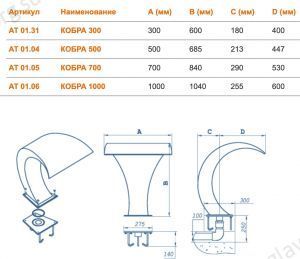 Водопад Кобра Эко 500 мм Акватехника, универсальный из нержавеющей стали AISI-316 (АТ 01.04ЭМ)
