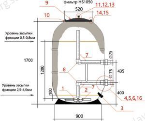 Внимание! Песочная засыпка, манометр и вентильная группа в комплект поставки не входит (приобретается отдельно).