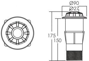 Форсунка используется для подачи воды в бассейн при наполнении его водой и при рециркуляционном водообмене. Вода в форсунку поступает через напорный трубопровод. Направление струи на выходе можно изменять с помощью шарика поворотного форсунки.