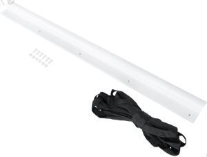 Комплект включает в себя жесткий профиль из ПВХ, который крепится к переднему краю пузырькового покрытия. Этот профиль обладает высокой плавучестью, благодаря чему он выполняет роль надежного поплавка. В центре профиля предусмотрен удобный ремень, который значительно упрощает процесс разматывания. Достаточно потянуть за этот ремень, и покрытие легко и равномерно раскатается по поверхности воды, без лишних усилий и замедлений.