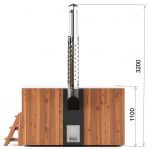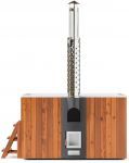 Данная модель оснащена интегрированной печью мощность 35 кВт, которая нагревает воду всего за 1,5-2 часа до комфортной температуры. Печь изготовлена из нержавеющей стали AISI-304. Не требуется подключение к электросети, легко чистить от золы и протапливать. Печь безопасна, оснащена защитным экраном на дымоходе, жаропрочным стеклом, никаких острых углов, все технические коммуникации спрятаны внутри конструкции.