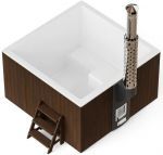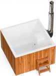 Купель PolarSpa Elite Quattro 180 с отделкой из термоберёзы - квадратная купель. В комплектацию входит лестница с 3 ступенями, интегрированная печь, а так же предусмотрена возможность дополнительного утепления композитной чаши и других дополнительных опций и оборудования. Удобное сиденье, где разместятся до 4 человек.