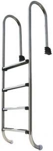 Лестница вставляется в пластиковую закладную деталь, входящую в комплект поставки, которая устанавливается заранее на этапе изготовления чаши. Если закладные детали не были установлены, то необходимо приобрести специальные адаптеры из нержавеющей стали соответствующего диаметра. Адаптеры крепятся анкерными болтами на готовую поверхность чаши. Лестница легко надевается на них или снимается при необходимости. В нижней части лестницы имеются пластиковые поворотные "копыта" для упора в стену бассейна.