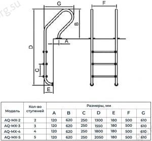 Лестница 4 ступени (уз.борт) AquaViva Mixta MX-415, нержавеющая сталь AISI-316 (AQ-MX-415)