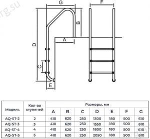 Лестница 3 ступени AquaViva Standard ST-315, нержавеющая сталь AISI-316 (AQ-ST-315)