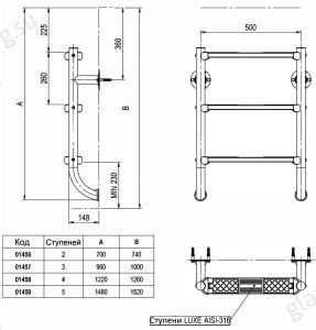 Лестница 3 ступени Markopool BHL без верхних поручней, нержавеющая сталь AISI-316
