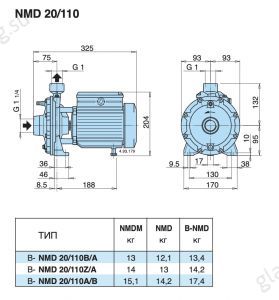 Насос без префильтра 4,2 м3/ч Calpeda NMD 20/110Z/A 0,55 кВт 380 В (6021002200000)