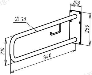 Поручень для инвалидов откидной 840х250 мм Инвапром, нержавеющая сталь (ПО-06.01.840.100.250.Н)