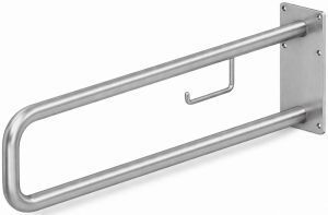 Поручень для инвалидов с бумагодержателем 840х250 мм Инвапром, нержавеющая сталь (ПН-07.05.840.100.250.Н)