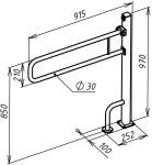 Поручень для инвалидов для унитаза откидной 915х970 мм Инвапром, нержавеющая сталь (ПО-06.05.915.100.970.Н)