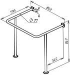 Поручень для инвалидов для раковины с доп. опорой 847х800 мм Инвапром, нержавеющая сталь (ПР-05.01.800.595.847.Н)