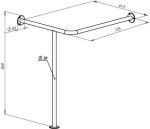Поручень для инвалидов для раковины угловой с доп. опорой 800х735 мм Инвапром правый, нержавеющая сталь (ПР-05.09.735.645.800.Н)