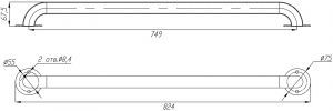 Материал поручня - нержавеющая сталь AISI-316, что гарантирует его долговечность и устойчивость к коррозии. Габариты поручня составляют: высота - 67,5 мм, длина - 824 мм, а диаметр - 32 мм. Также предусмотрены крепежные отверстия: их две пары, диаметр каждого составляет 8,4 мм.