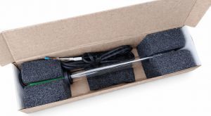 Rx-электрод изготавливается в виде стеклянной колбы с оголовком и выходящим из него проводом. На одном конце колбы установлен тонкий металлический штырь из платины, а на другом конце расположен провод с двумя жилами для подключения к клеммам контроллера кристалл. Одной из особенностей RX-электрода является его безопорность. Для этого типа электрода в качестве опорного сигнала используется встроенный в pH-электрод электрод сравнения, что не требует его калибровки и периодической замены.