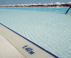 Эта решетка эффективно справляется с задачей отведения переливающейся воды, предотвращая образование луж и обеспечивая безопасность вокруг бассейна. Ее конструкция спроектирована таким образом, чтобы минимизировать риск засорения, что также упрощает уход за бассейном.