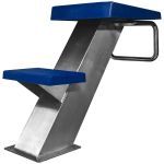 Стартовая тумба для бассейнов. Может использоваться как в домашних, так и спортивных, и коммерческих заглубленных бассейнах. Используется для ныряния в воду (с тумбы) и старта для плавания (хват через ручку). Ручка вилочного типа позволяет также быстро выйти из воды. Прочная конструкция из нержавеющей стали 304 марки. Площадка из полимерного стеклопластика с антискользящей поверхностью голубого цвета.