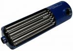 Теплообменник ABLETECH HE представляет собой циллиндрический сварной кожух, в котором установлены бесшовные теплопроводные трубки из стали AISI-316L диаметром 10 мм и толщиной 0.6 мм. С помощью насоса фильтра вода из бассейна попадает в теплообменник. При контакте воды со трубками происходит передача тепловой энергии. Таким образом вода в бассейне нагревается. Если температура воды становится выше установленного значения на термостате, срабатывает автоматическая блокировка подачи воды в теплообменник.