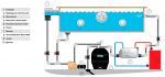 Теплообменник устанавливается в систему циркуляции воды бассейна (вторичный контур) непосредственно за песочным фильтром на его выходе. Вода бассейна, проходя через устройство нагревается за счёт нагревателя (трубки или спираль) теплообменника. Теплоносителем выступает тосол или вода, разогреваемая в газовом котле, тепловом насосе или другом устройстве (первичный контур). Теплообменник - отличный выбор для отопления воды бассейна при наличии газового котла, теплового насоса или солнечного коллектора.